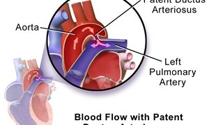 Bij te vroeg geboren kinderen (prematuren) verloopt de natuurlijke sluiting van de ductus soms niet goed, waardoor dit bloedvat open blijft. Deze situatie wordt ‘persisterende ductus arteriosus’ genoemd, afgekort PDA. Lang werd gedacht dat zo’n PDA de kans op ernstige complicaties bij te vroeg geboren kinderen tijdens het verblijf op de intensive care vergroot. Het gaat dan om complicaties zoals een chronische longaandoening, hersenbloeding, darmontsteking of zelfs overlijden. Daarom wordt geprobeerd de ductus arteriosus zo snel mogelijk te sluiten met medicijnen. Lukt dat niet, dan is het bloedvat eventueel operatief af te sluiten met een metalen clip.